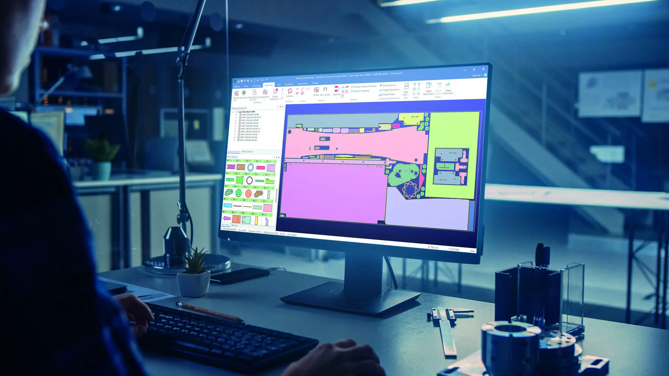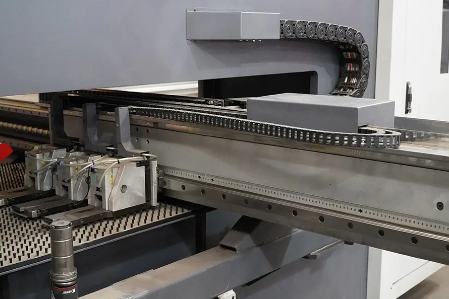 When paired with modern nesting software, material utilisation improves dramatically. Parts are arranged automatically across the sheet, scrap is reduced and repeat jobs become essentially a load-and-run operation. For many manufacturers this becomes the bridge between manual fabrication and full automation, increasing output without immediately requiring robotic handling.